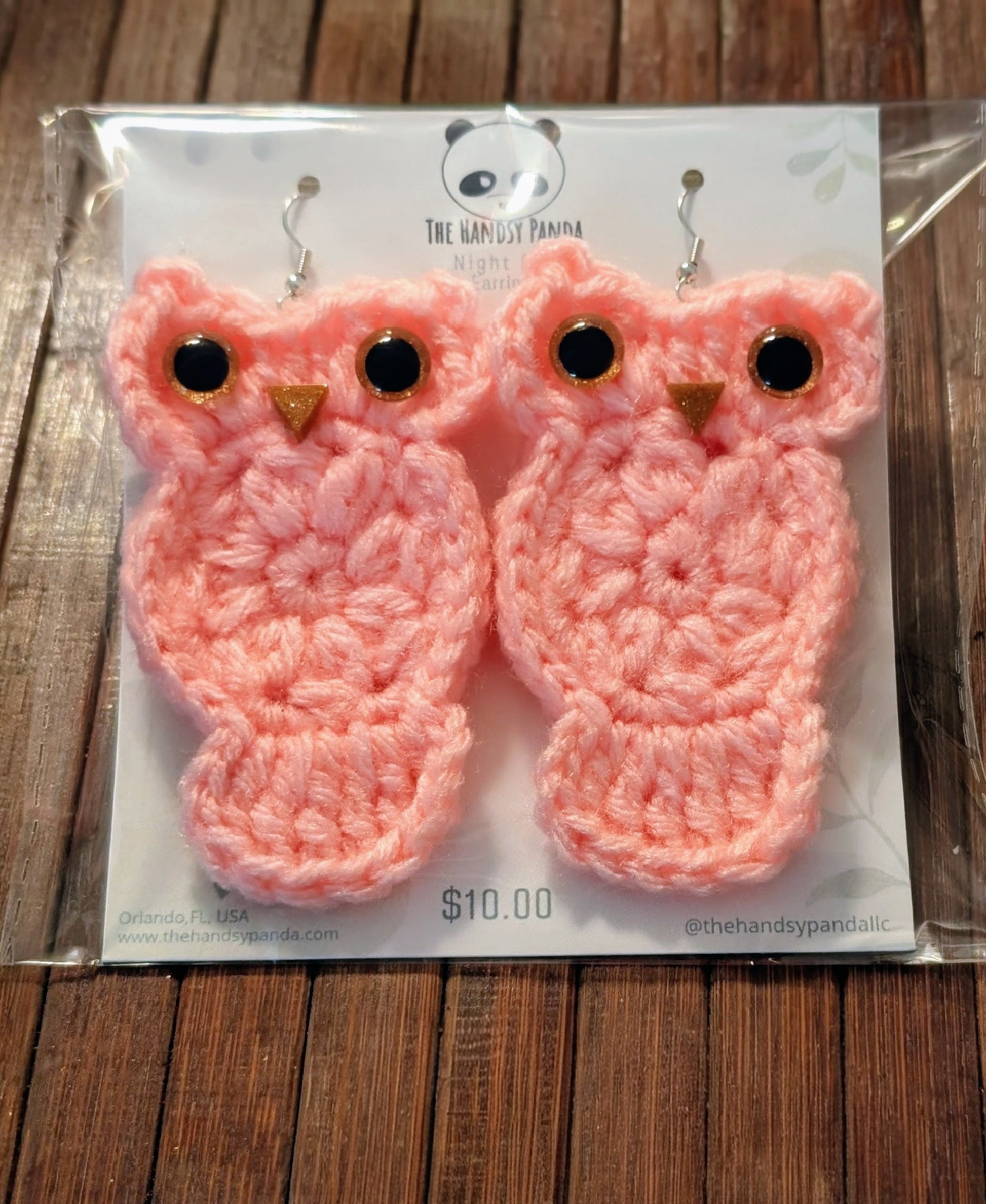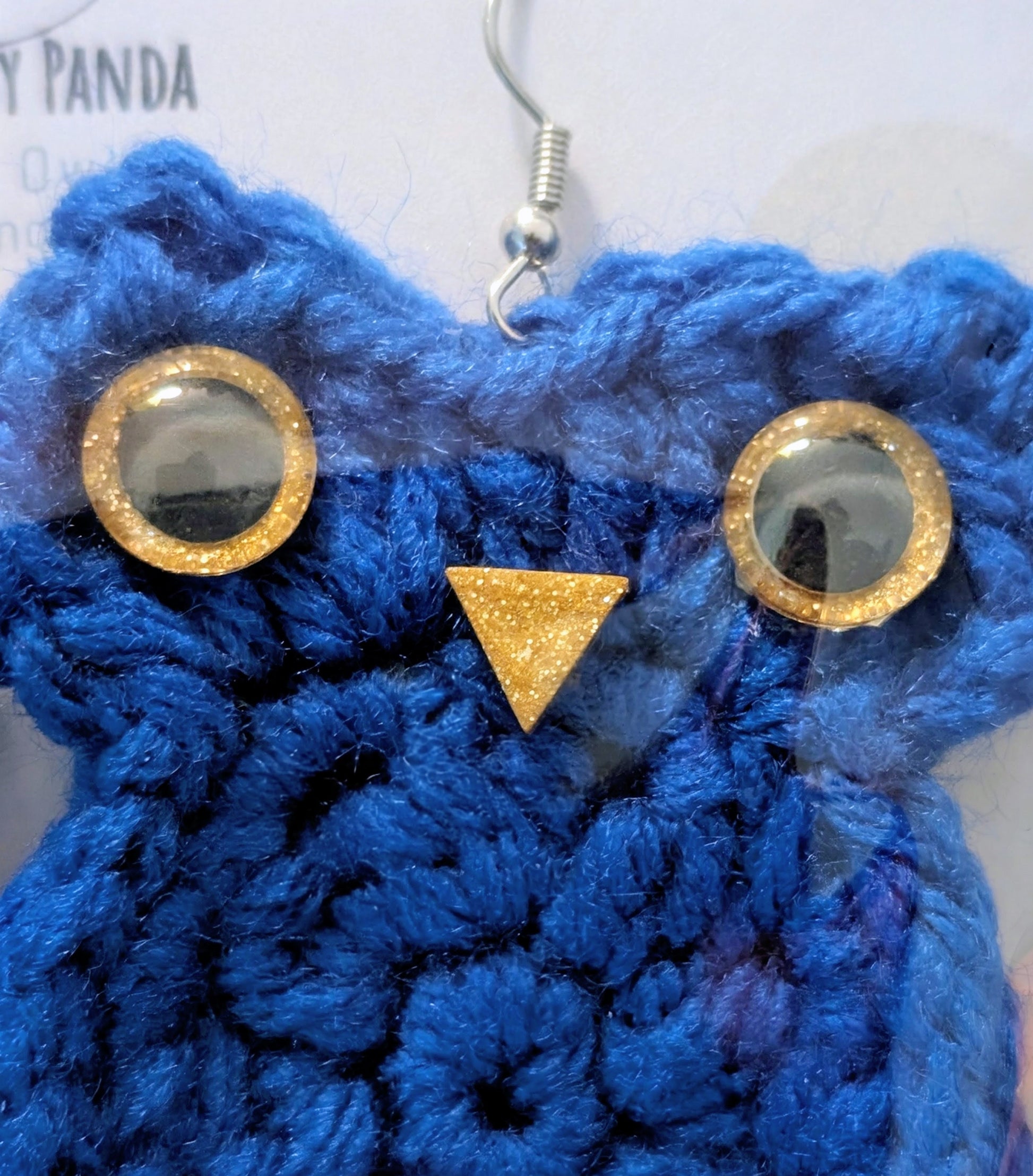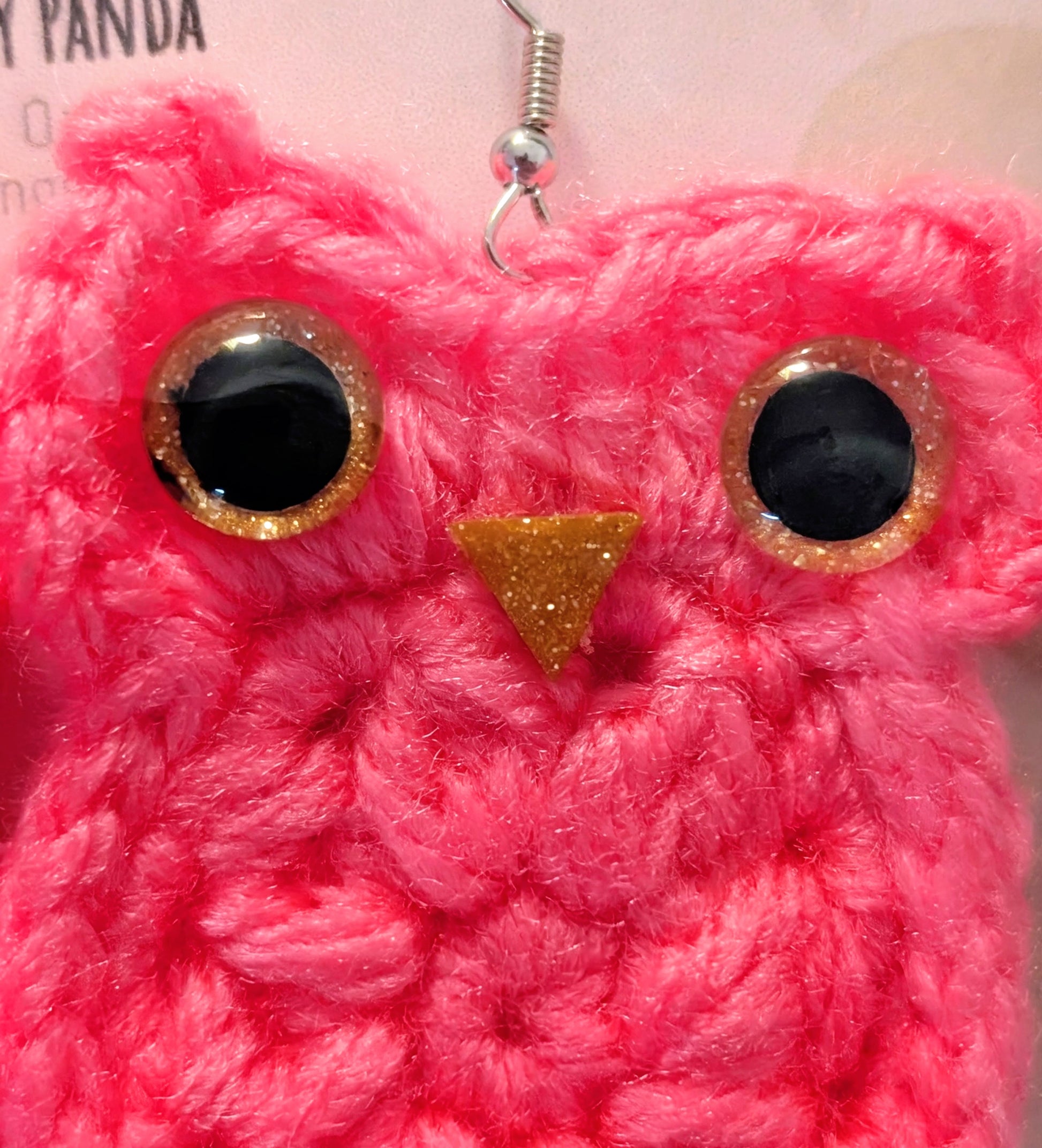 Hoo's ready to dance? Inspired by the electric energy of EDC Orlando, these hand-crocheted 'Night Owl' earrings are your must-have accessory for concerts, festivals, or just bringing a major pop of fun to your everyday look. Each owl features handmade resin eyes and beaks, finished with a glossy glass cabochon for a captivating, life-like shine that catches the light perfectly as you move.