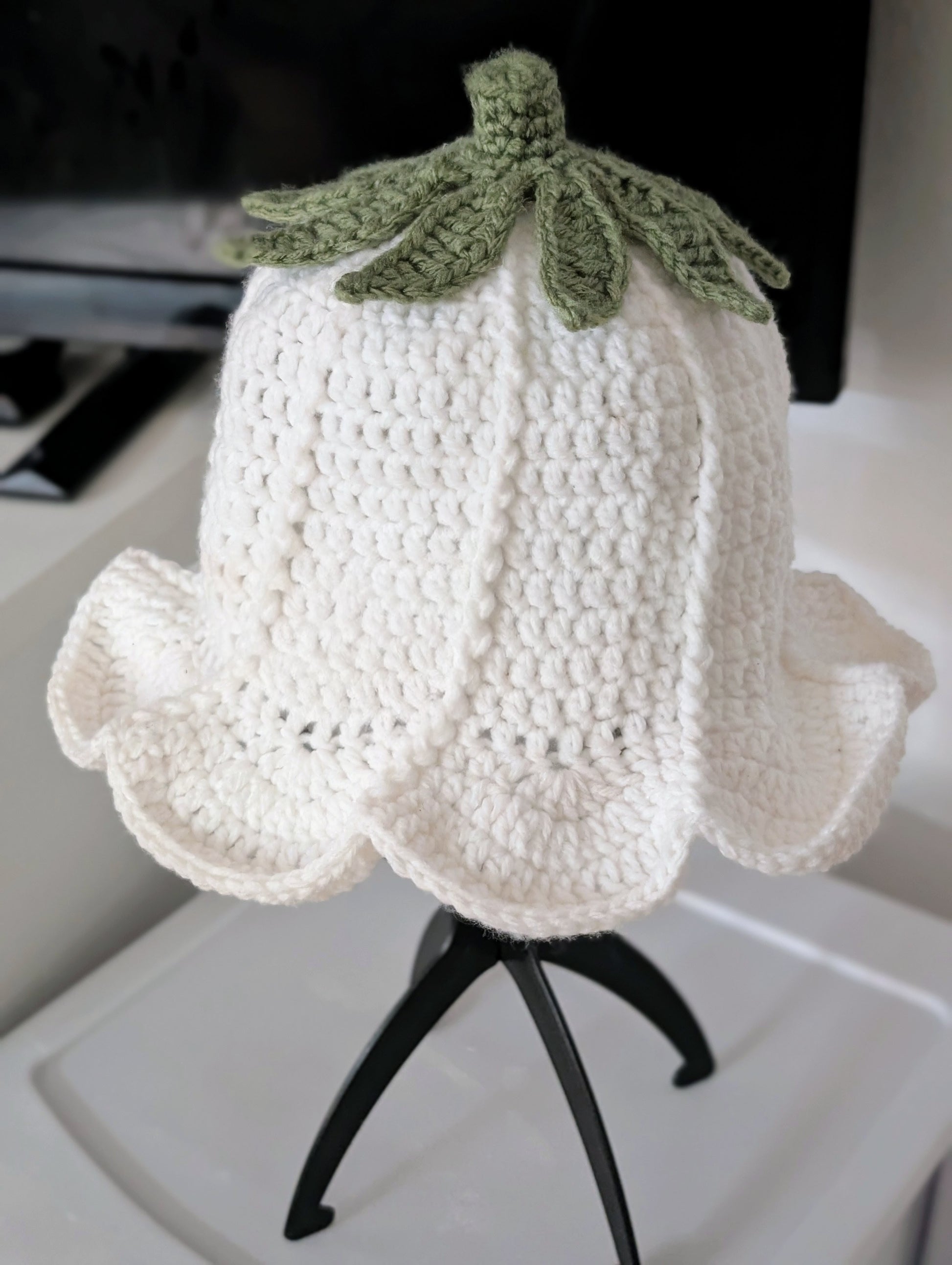 Step out and bloom! This playful, hand-crocheted bucket hat is designed to look just like a vibrant tulip, featuring a fun bell shape and a textured green stem base. It's the ultimate statement piece for festivals, garden strolls, or just bringing a little extra sunshine to your day.