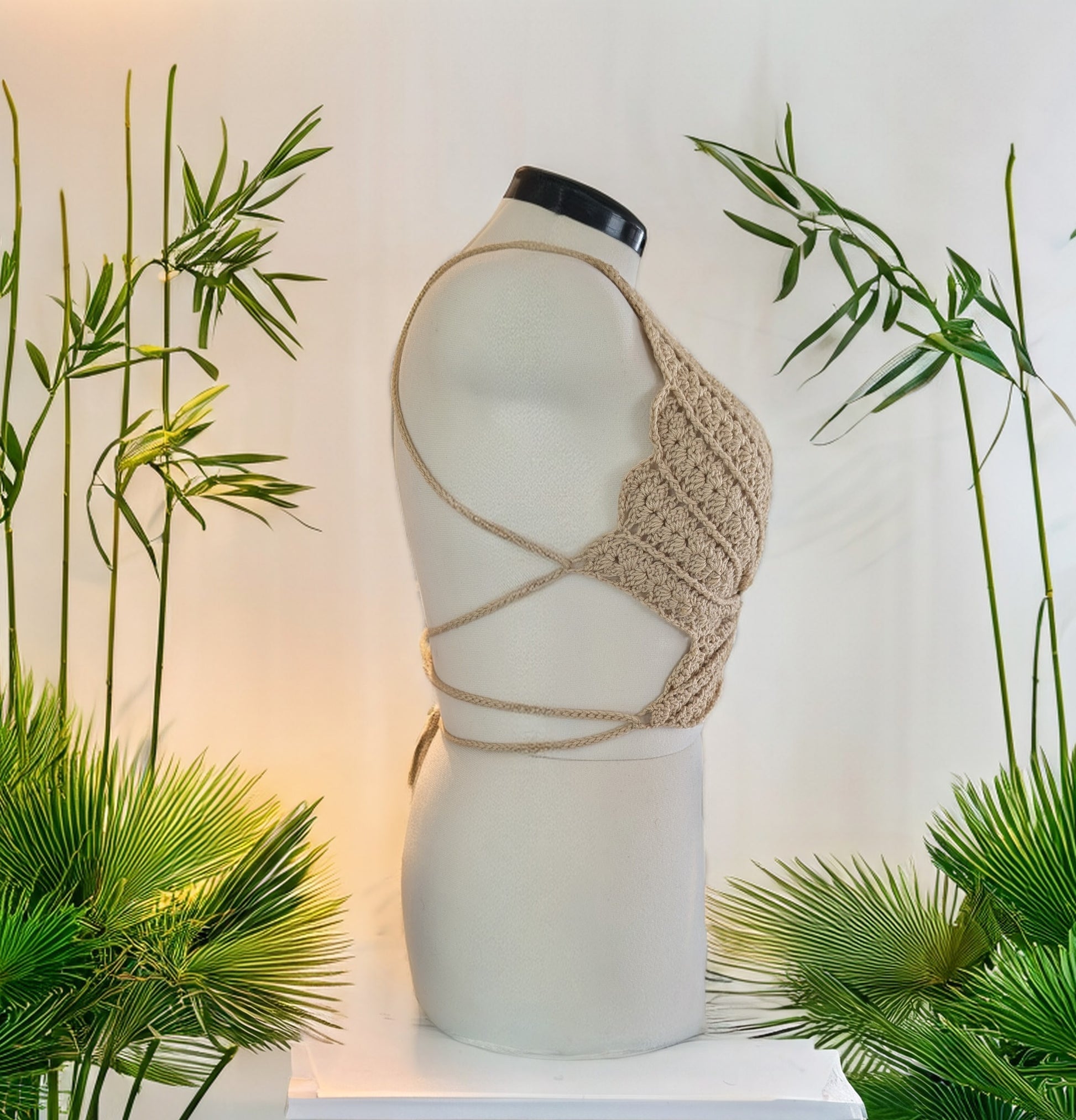 Float through your next festival or sunny day in this gorgeous, whimsical Butterfly Crochet Top. This piece is a true showstopper, meticulously crocheted to mimic the elegant, detailed shape of a butterfly's wings, designed for both stunning visuals and a customizable fit.